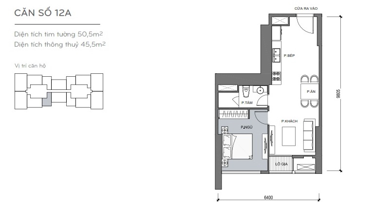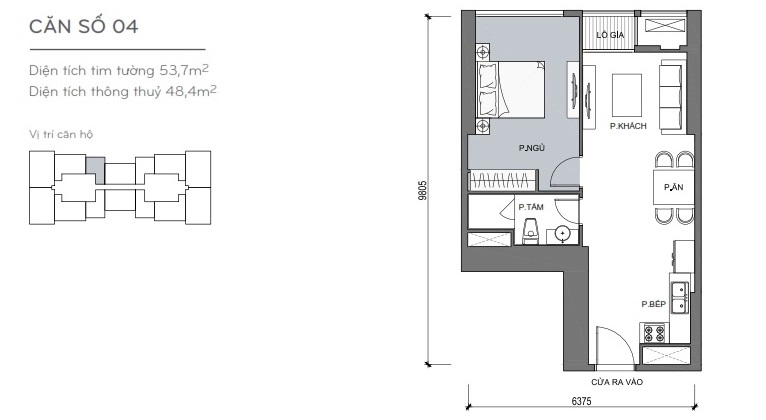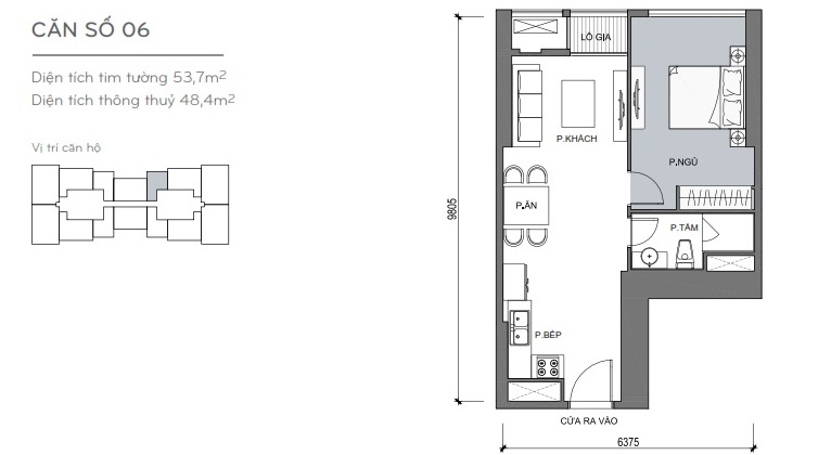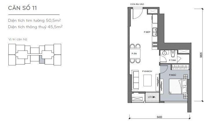 - Căn hộ 1 phòng ngủ có các diện tích: 50,5m2, 53,7m2.